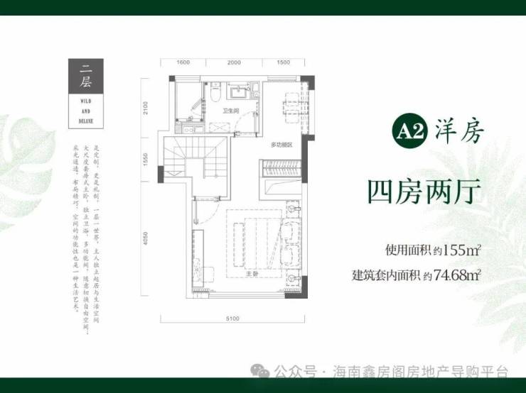 二期在售户型2:跃层洋房74.68㎡三房一厅