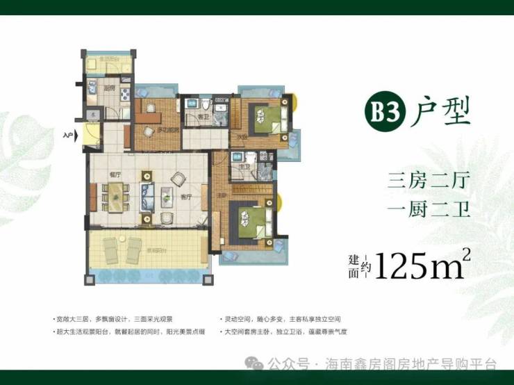 三期在售户型1:洋房125㎡三房一厅