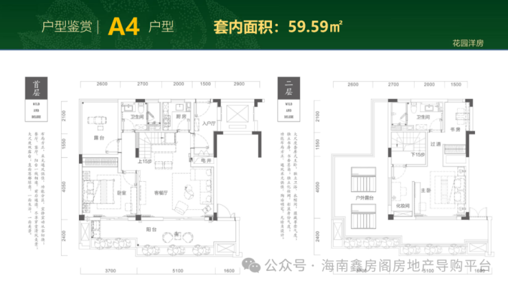 二期在售户型4:跃层59.59㎡三房一厅