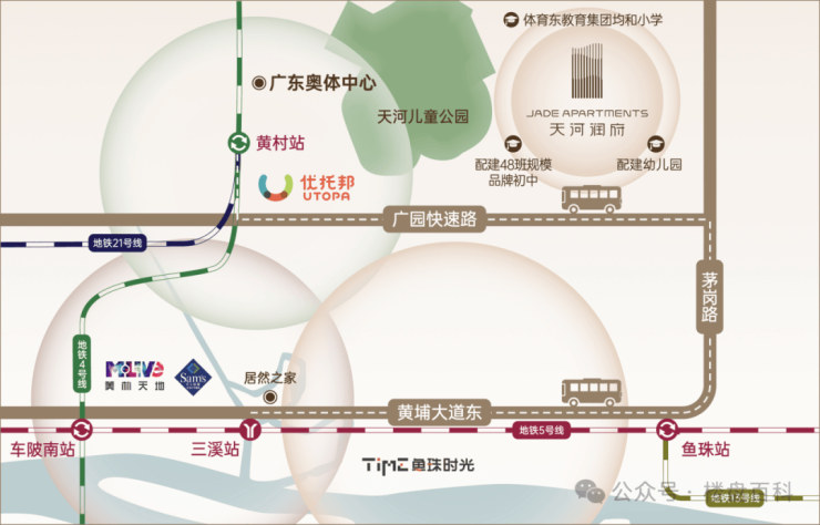项目位于广州市天河区岐山路西广园快速路天河儿童公园旁,现成最近的地铁是13号线珠村站,规划广州地铁19号线吉山站附近;坐落于天河智谷板块,处广州科技中轴上(广州东进第三中轴),承载珠江新城、金融城CBD的外溢居住需求;享天河智慧城、天河智谷CTD的千亿产业红利。