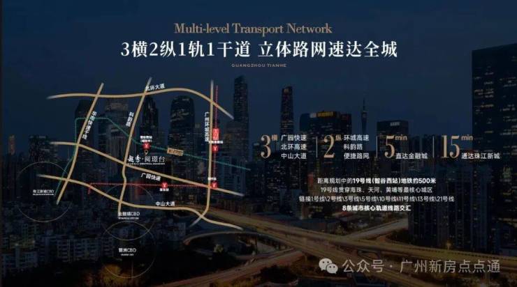 北环高速+广园快速+中山大道/环城高速+科韵路3横2纵主干道