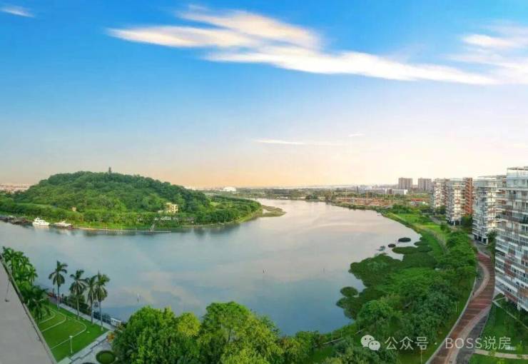自然景观资源:亚运城内部有中心湖,其中中海天幕湾组团临约 5 万方莲花湾中心湖,拥有一线湖景资源。外部则有大小浮莲山、海鸥岛、莲花山等景点环绕,居民可以亲近自然,享受自然风光。