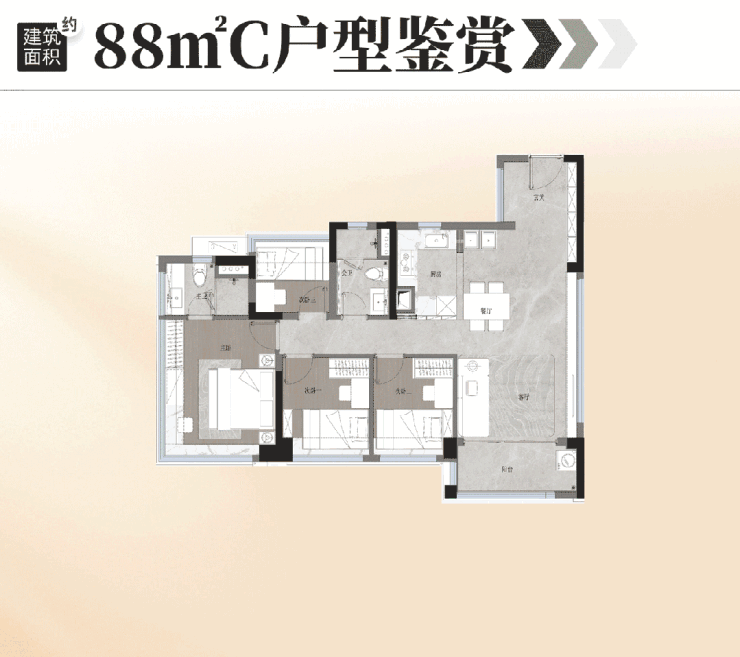 约88平户型,堪称“全周期变形金刚”: