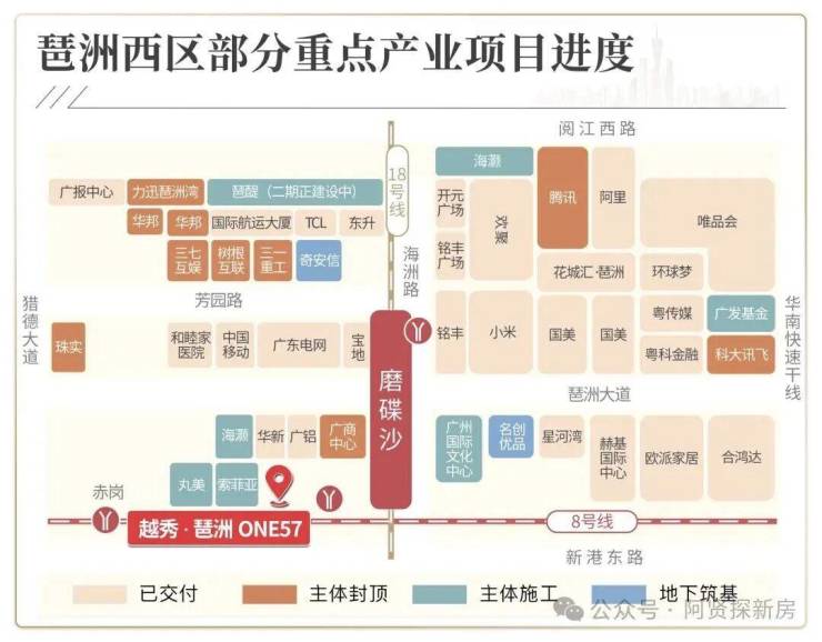 【1、无敌地段——发展前景的确定】以“会展+总部+数字”为核心的琶洲,与珠江新城CBD、金融城CBD,构建广州CBD“黄金三角”(直线距离)10公里江岸内汇聚总部办公、金融创新、人工智能及贸易功能,媲美香港维多利亚港CBD的经济体。项目落位的琶洲西区更是华南总部企业聚集地核心,已引进阿里巴巴、腾讯、小米等总部企业超25家,计划到2035年超50家。(数据来源:广州日报)