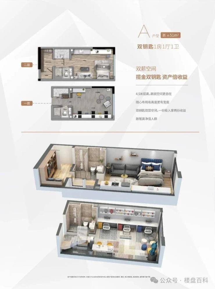 产品户型:33m²、50m²、58m²复式