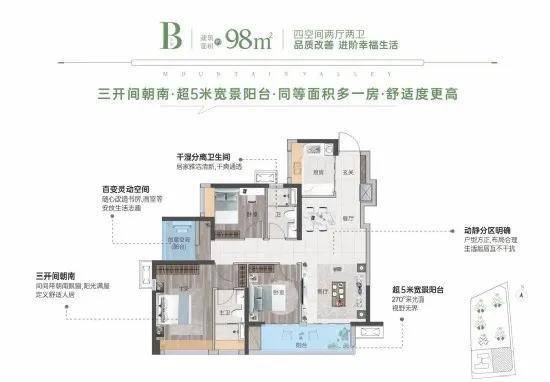 区域内唯一97㎡4房户型,精英阶层置业首选