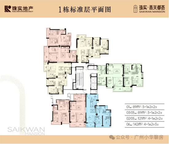 主推建面约89-121-142平4-5房,是西关唯一的100%纯四房起步社区、唯一100%使用率户型、100%N+1房设计。