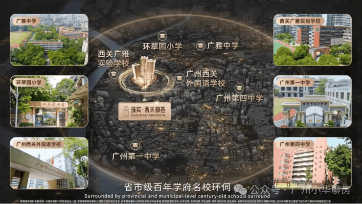 项目除了自身配套的幼儿园,目前小学读华侨小学翠园校区,中学需要派位,根据2023年荔湾区小升初学校分组中就有广雅中学、广州市第一中学、广州市第四中学等省级名校,名校环绕汇聚的优势就在于,闭眼盲摇,都不会太差。