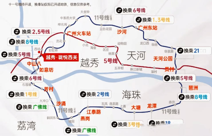 双地铁 5/11号线(在建中) 0换乘直达珠金琶
