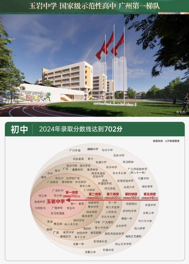 ◎ 广州市玉岩中学,国家级示范性高中,2024年广州中考黄埔唯一上700分录取线高中,广州第一梯队学校,中科院认定拔尖人才学校,为全国985、211输送大量人才。