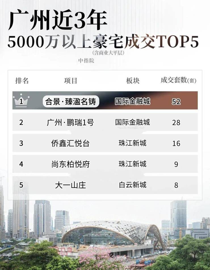 近三年,在5000万级别以上豪宅市场,合景·臻溋名铸累计网签超52套,超过广州·鹏瑞1号和侨鑫汇悦台。