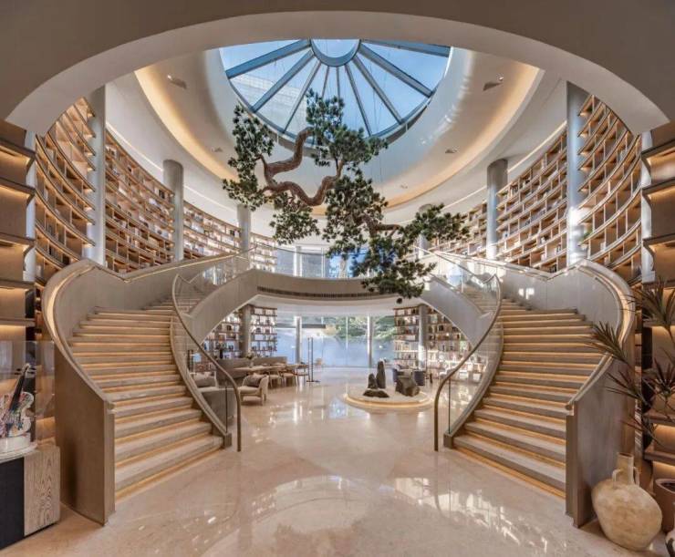 园林整体下沉约5米,每一块石头、每一株树木、每一处流水,都经过了精心排布。