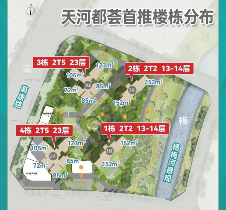项目核心亮点突出,产品力出众,主推80-125㎡三至五房,通过创新设计实现100%-110%超高使用率,其中125㎡户型可做到五房,在天河同类户型中极具优势;全屋搭载智能家居系统,公建化立面搭配超大窗地比,3.0容积率搭配超4万㎡台地式半山园林,背靠旧羊山公园,居住舒适度拉满。