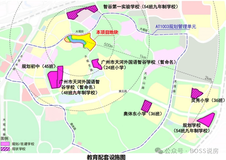 根据,项目自身配建6班幼儿园,中小学由天河外国语智谷学校统筹解决。