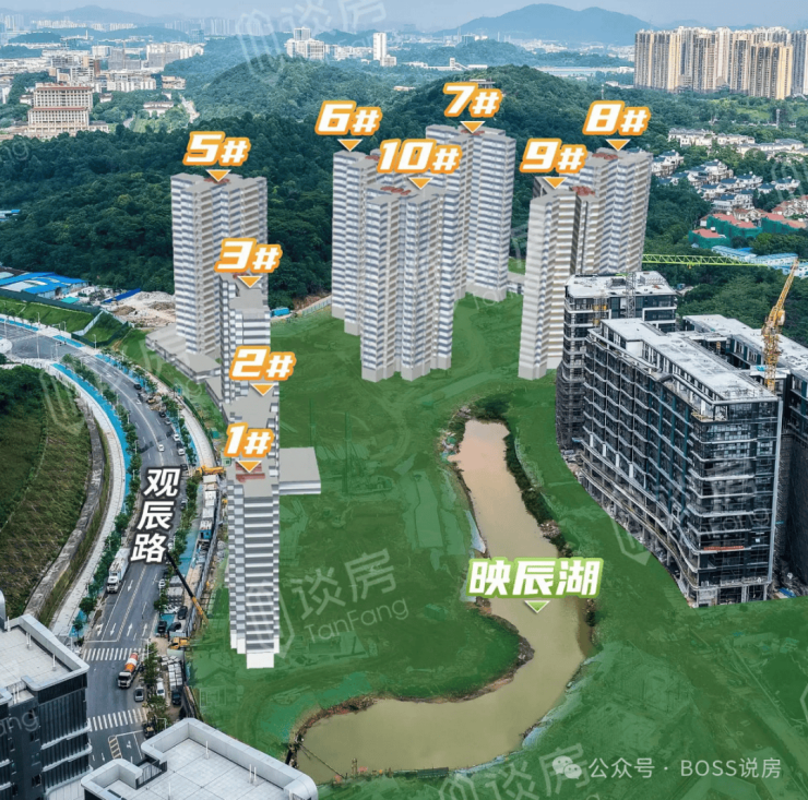 项目南侧有映辰湖(规划扩建至1.7万㎡湖景绿地),步行可至日月双湖。