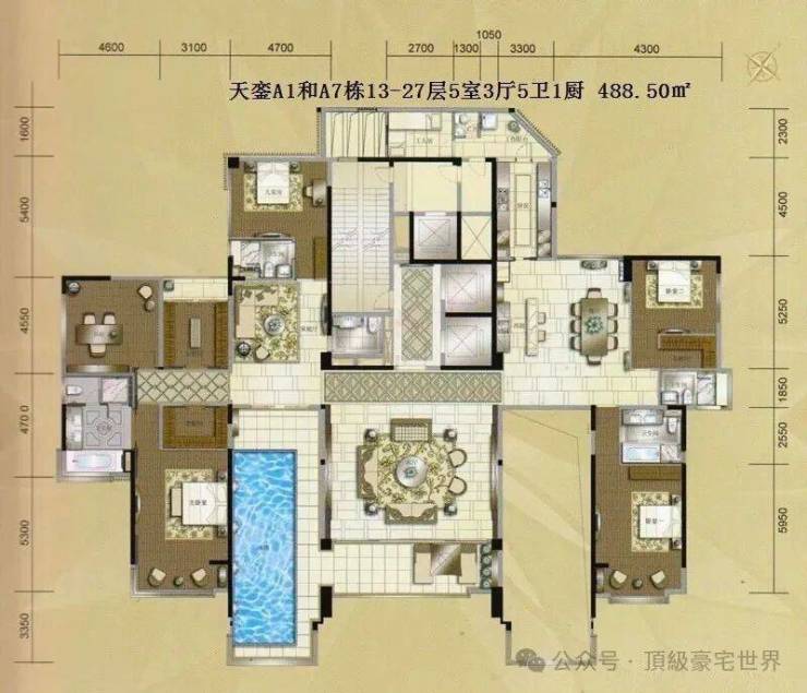 这是在珠江新城市中心的豪宅小区天銮,建筑面积493平米,一线江景小蛮腰就算了,居然还带私家泳池,居然有三个厅,主人房甚至有两个衣帽间+一个大书房直望小蛮腰,每个房间都是套房主人房的浴缸可以一边泡澡一边望江景,小蛮腰地段也是绝了,左手边是天德广场,右手边是海心沙,花城汇,南边珠江,北边igc简直太方便,这才是广州真正的顶级豪宅!