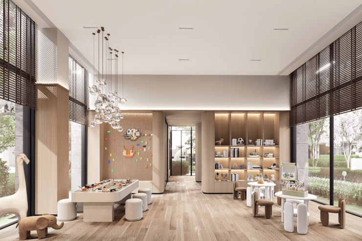 考虑到孩子放学后的“真空期”,在设计策划的思路中增添了四点半学堂的概念。在温润柔和的原木空间里,为孩子打造一个安全有趣的自习玩乐空间。在这里既可以激发孩子的艺术潜能,也有大自然与同龄朋友的陪伴,让每个小宇宙焕发更多色彩。