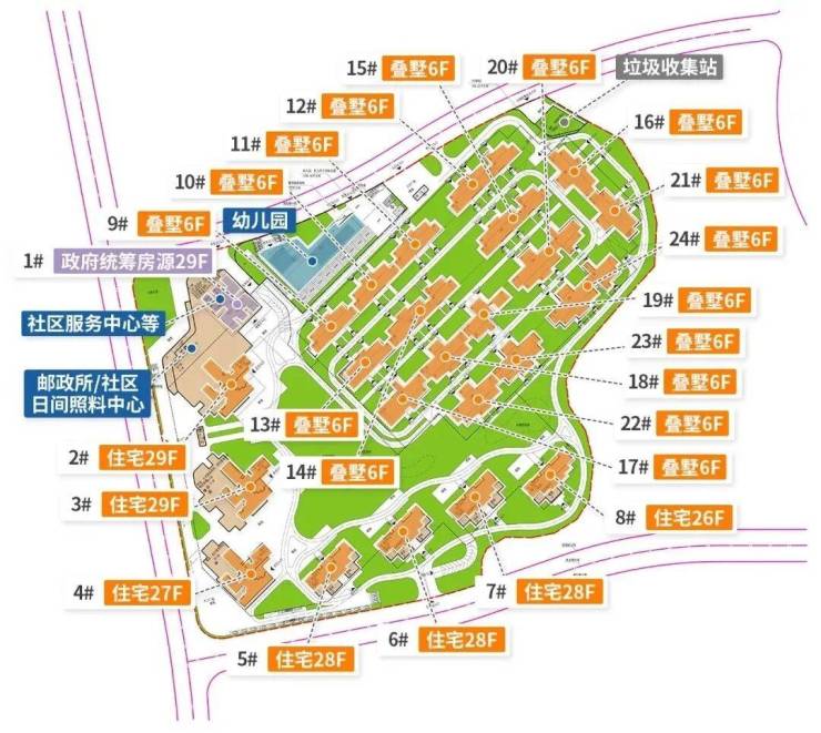 总规划:一期(12 栋住宅),二期 (16 栋别墅 + 8 栋洋房)