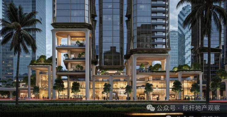 通过创新设计在底盘中,创造了一座立体的城市雨林,这座“雨林”绝非简单的景观堆砌,而是将“不同标高的屋顶花园、地面花园与地下光庭”相连,让建筑不再是割裂城市的“孤岛”。
