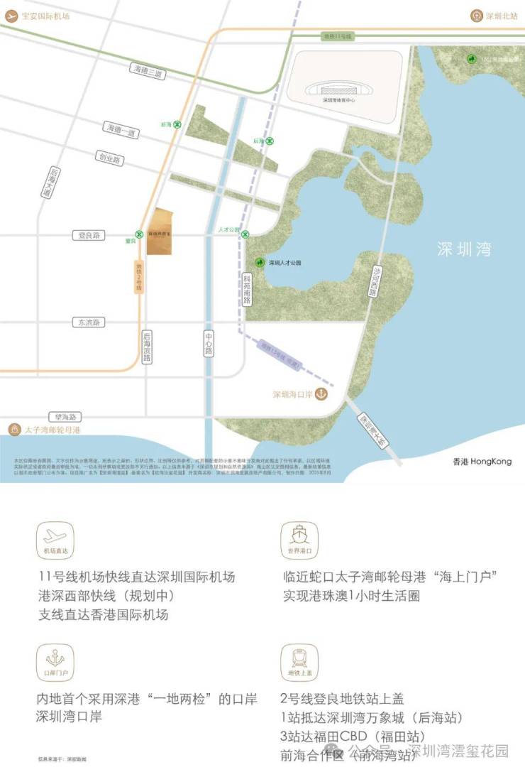 一席藏尽海/湖/园/城,四重盛景,踞守深圳湾畔约270°环瞰海景壮阔、湖境悠然、园景森氧、城脉璀璨的封面地脉。近享深圳人才公园,占地77万平方米,内湖面积约32万平方米,"公园生活圈"步行可达。(信息来源:深圳人才公园公众号)
