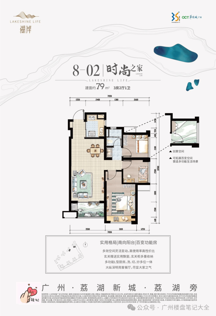 建面约79-110方三至四房高实用率、大面宽设计、近揽如画风景