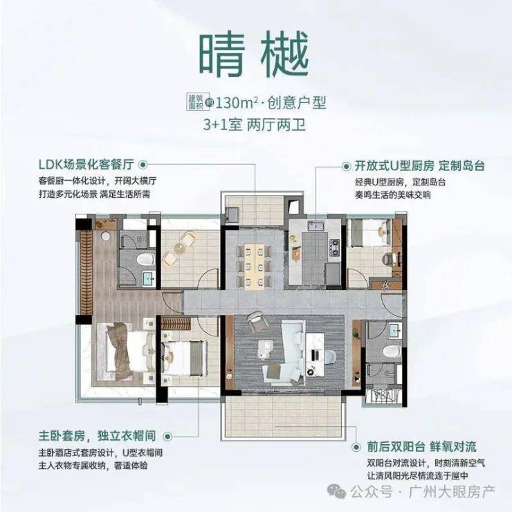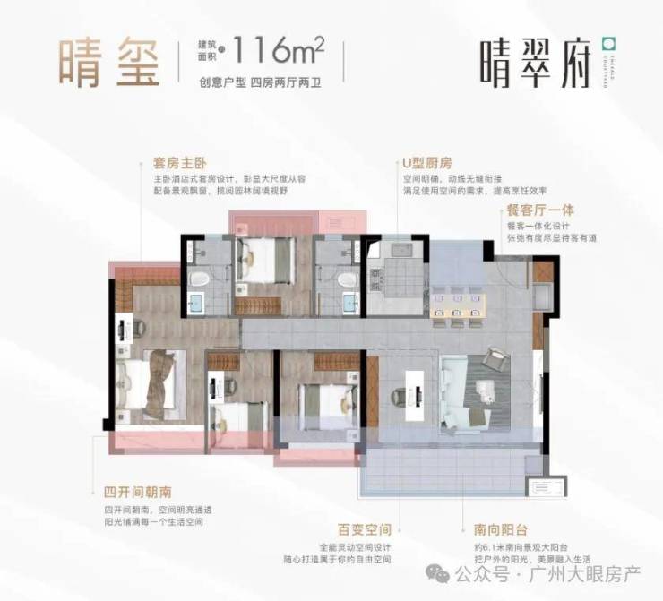 户型:建面约76-130 ㎡三至四房宽景臻品