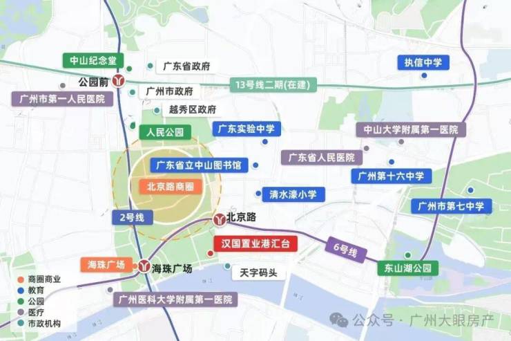项目楼下100米就是6号线北京路站,另外步行600米就是2号线以及6号线交汇站海珠广场站,珠江新城、琶洲、白鹅潭皆在项目8公里范围内。