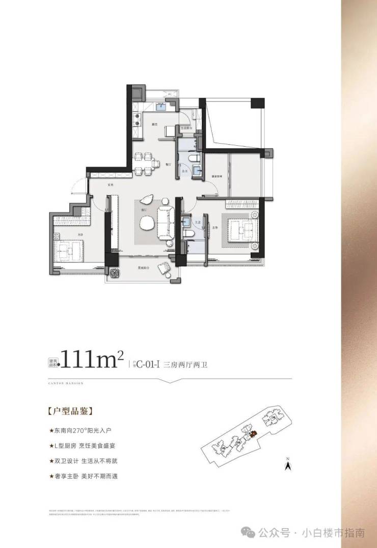 C栋01户型:111㎡ 三房两厅两卫(2-29层)