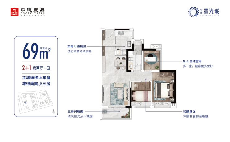 69㎡全南向地铁口三房,白云湖最低总价上车户型