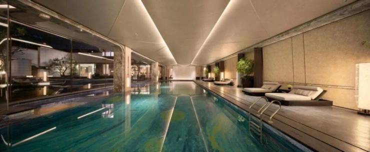 经过对近千组保利业主的调研,泳池参考高端酒店的理念打造,引入大面积自然光,带给人自然舒适的松弛感。泳池底部的星空图案会营造出身处宇宙星河的代入感。张弛之间,曲直之內,尽显艺术内涵。