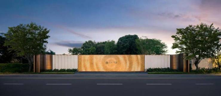 正对金鳞墙,56米长、10米高的“一城风华门”由花瓣状立柱支撑。极致的空间尺度下,是与社区理念相衬的尊贵感和序列感。