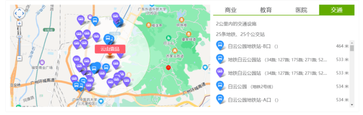 地铁2号线,穿越白云机场、新体育馆,地铁站离云山锦绣家园步行只有6分钟路程,现代化的交通工具使本项目交通便捷快人一步。云山锦绣家园位于白云大道西侧白云机场东侧,南接童心路、广园路,北接新广从路,紧握广州市北面交通要道。每隔数十秒就有一辆公交车经过。