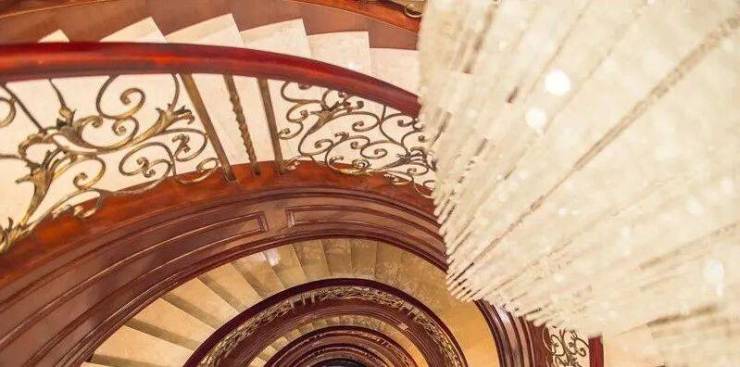 大户型为旋转式楼梯美观度较高,表现力强。盘旋而上的造型让人在行进间享受着韵律节拍,富有艺术性;