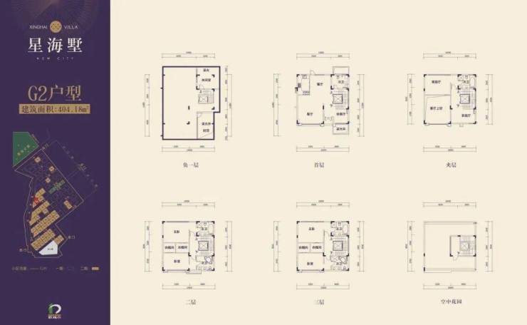 每栋别墅5层建筑,总建筑高度14.8米,约300-830㎡家族大宅,5大全套房设计、6米中空挑高奢华客厅、带电梯井、旋转式楼梯、上悬窗设计、首层带车库、双采光井,全屋高赠送面积率。