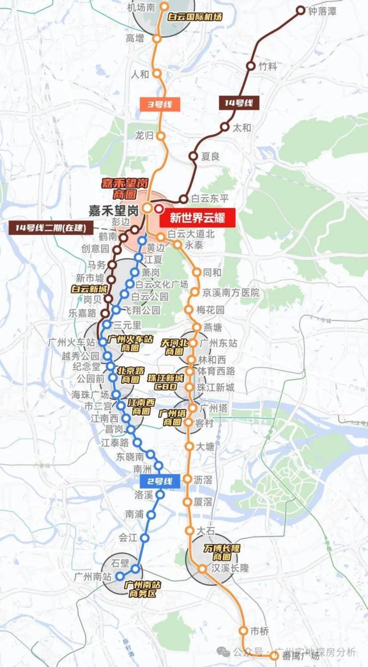项目距离地铁2/3/14号三线交汇的嘉禾望岗TOD大约660米,20分钟直达珠江新城。2号线直达广州火车站、广州南站、3号线5站即达白云国际机场、14号线连通白云及从化,未来更可直达清远中山、珠海等地。