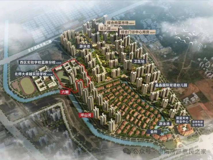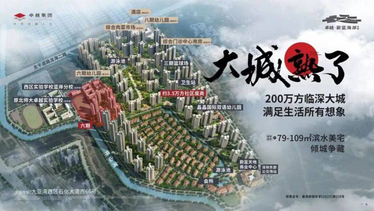 本项目位于大亚湾西区中轴位置,属于深圳都市圈地理中心、深圳东进桥头堡、惠州融深融湾首站的战略高地,一步坪山,一站深圳,所在片区将逐步承接深圳外溢产业及人口,迎来都市圈发展新机遇。