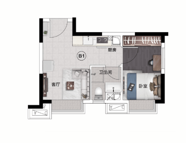1.轻奢平层公寓 | 44㎡一室一厅一卫