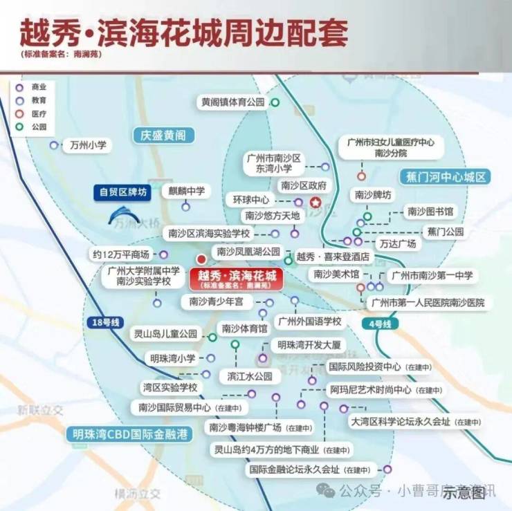 约5KM内可达南沙图书馆、体育馆、少年宫、国税局、地税局、供电局、南沙区政府、政务服务中心等