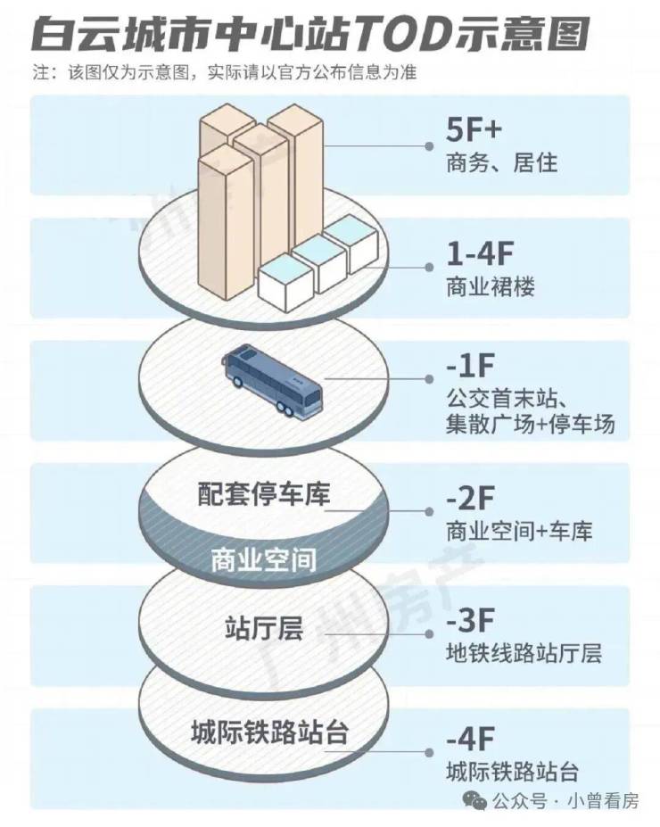 约7万㎡的白云城市中心站场综合体,整个站场以垂直立体式的TOD模式打造,涵盖地下商业空间、停车场、公交车首末站、集散广场,以及多层的商业裙楼。