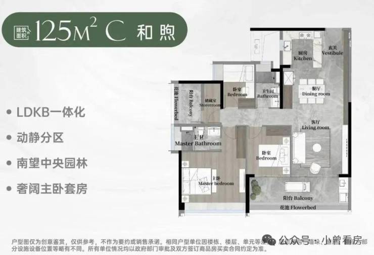 125平方和颂:(3+1)室2厅2卫,超大阳台