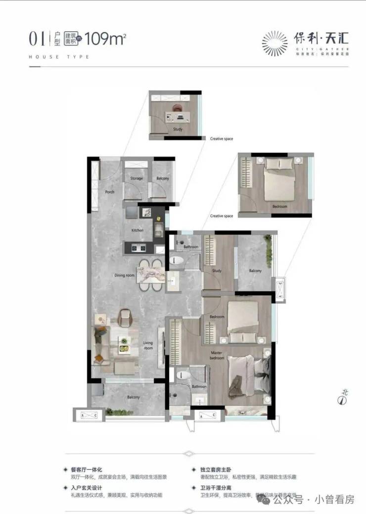 作为天河智谷的核心大盘,保利天汇依托天河、金融城、琶洲三大核心产业区,享受周边2500家高新企业、25万高精尖人才的产业红利。项目内部配备熊猫主题乐园、无边际泳池、酒店式入户大堂、风情商业街等高端配套,打造集文化、休闲、社交于一体的高品质居住社区。同时,五期紧靠奥体山体公园(规划中),部分单位可推窗见绿,享受更优质的景观资源。