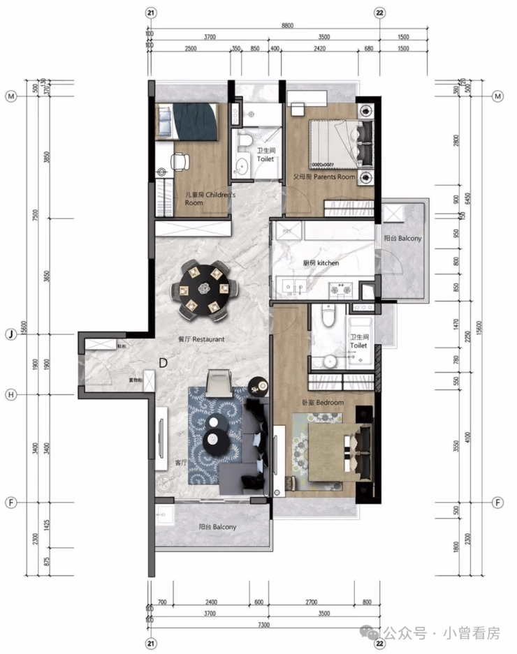 82㎡户型,乍看直厅户型,做了3房好像整体也比较中规中矩是不是?