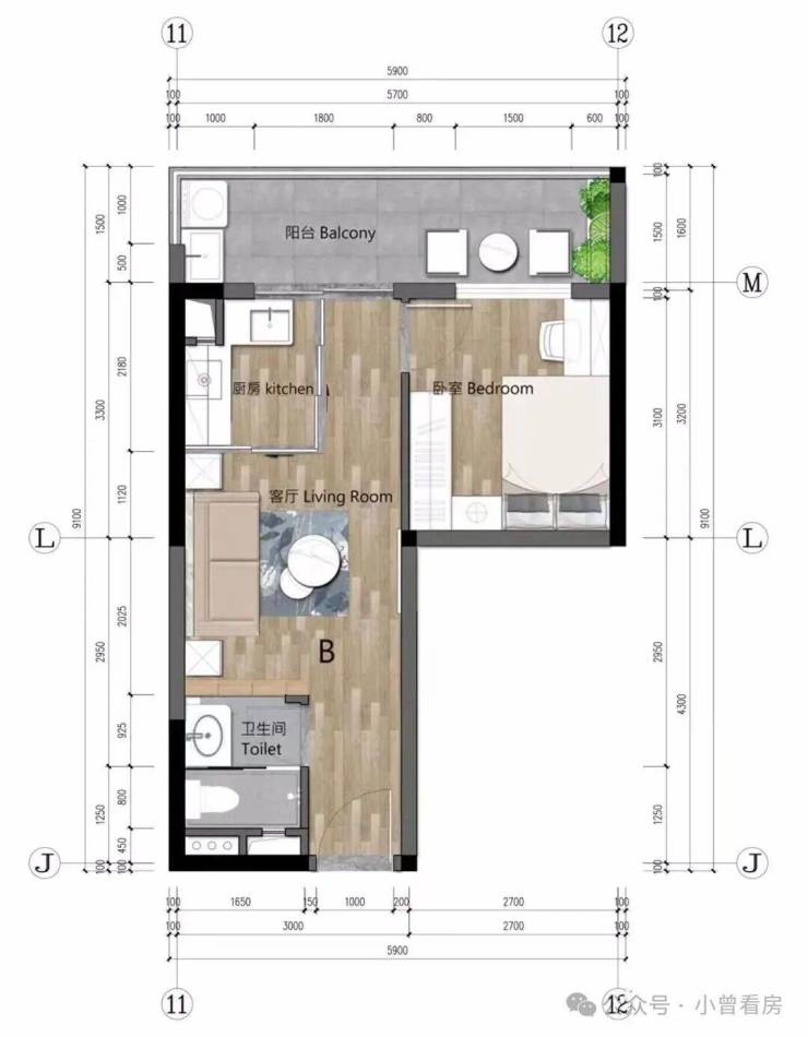 最小的48㎡单位,基本就是“一眼睇晒”的一房一厅,卧室连阳台,应该比较舒适。