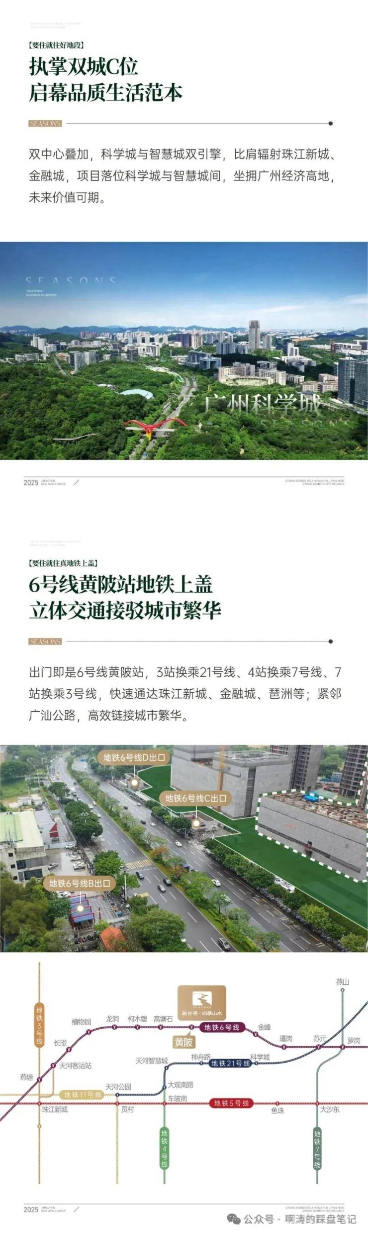 首入广州黄埔,项目落子天河智慧城与科学城交汇处,携地铁上盖 + 高使用率户型 + 自建商业三大硬核卖点而来,坐拥板块高知人群集聚、交通教育配套完善的优势,精准匹配高端改善需求。