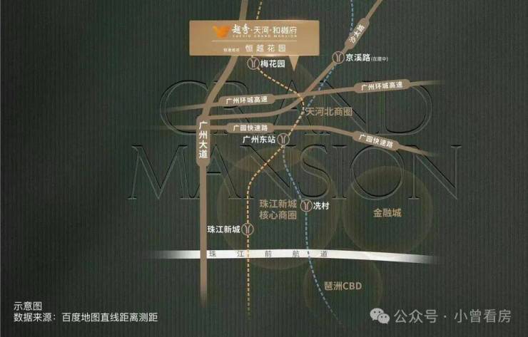 项目位于广州城市中轴,天河北板块,距离珠江新城直线距离仅5公里,一路串联广州大道北、天河北、珠江新城等商圈