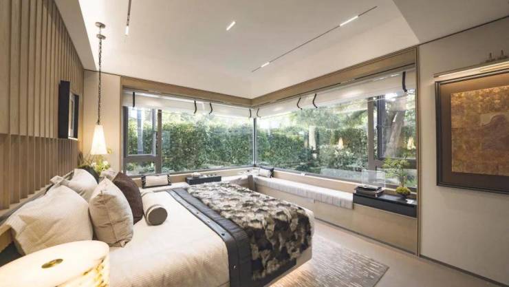 更迷人的当属酒店行政套房“同款”主卧,360°的观景飘窗,不仅带来环幕观景面,还可以打造为阳光衣帽间,作为主卧小家化的场景延伸。