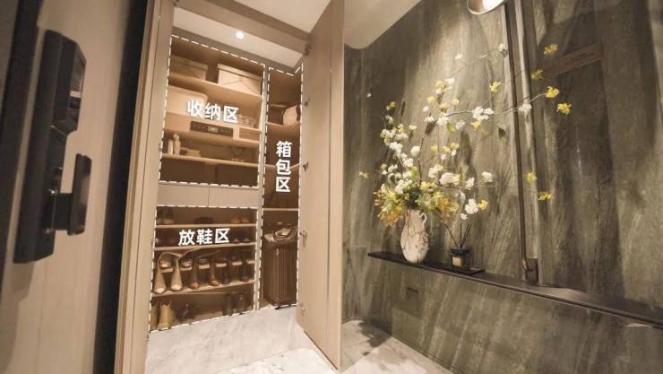 进门处的入户玄关空间,形成归家过渡的同时,更确保居家隐私。还能打造为800库收纳间,孩子的学步车、妈妈的包包等物品统统收纳。