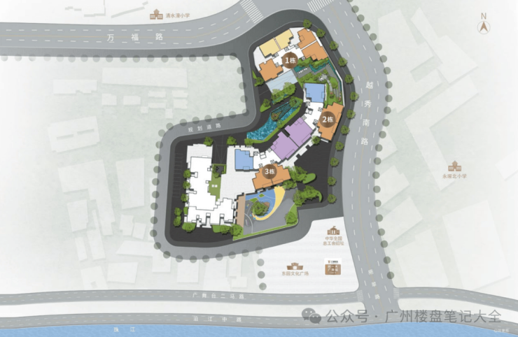 文脉风尚◎紧邻百年省级学府 千年文蕴伴成长,项目自配建1所幼儿园(位于项目3栋的裙楼);北侧一路之隔是省一级清水濠小学,小升初组别有省实中学(省重点)、十六中(省一级)、培正中学(省一级)、七中(省一级)等名校环伺,一站式教育资源配套让家长更省心。