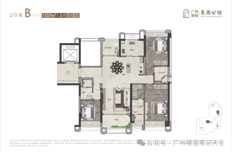 【137 ㎡ 3房带双主套】