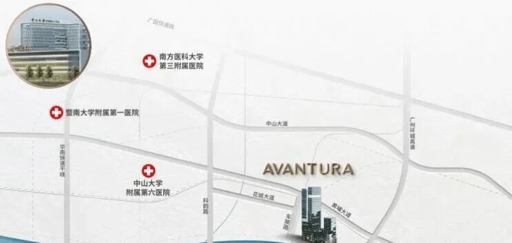 项目周边拥有南方医科大学第三附属医院,中山大学附属第六医院,暨南大学附属第一医院,黄埔区中医院……等多家医院为业主健康保驾护航。